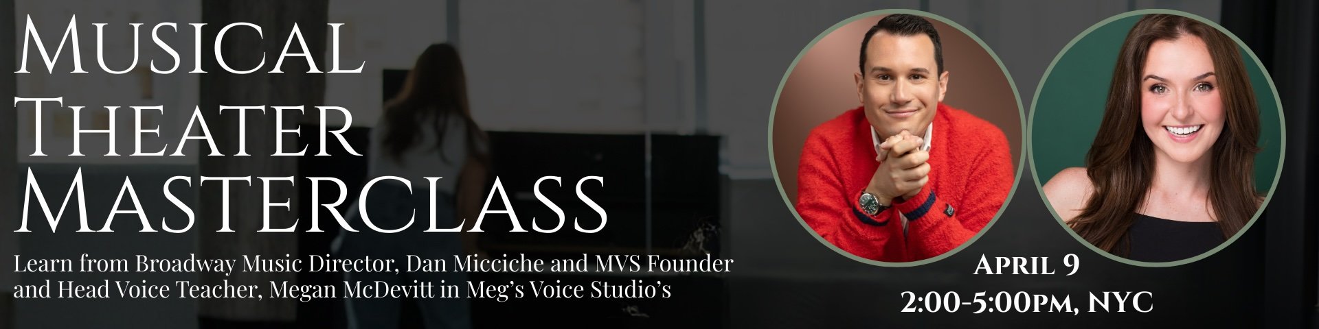 This dynamic masterclass brings together Broadway Music Director, Dan Micciche, and MVS founder, Megan McDevitt, to share practical strategies, creative insights, and real-world experience. Through candid discussion and hands-on guidance, students will gain actionable tools they can immediately apply to their own work. Perfect for professionals and creatives ready to sharpen their skills and elevate their impact.